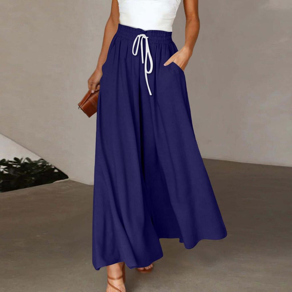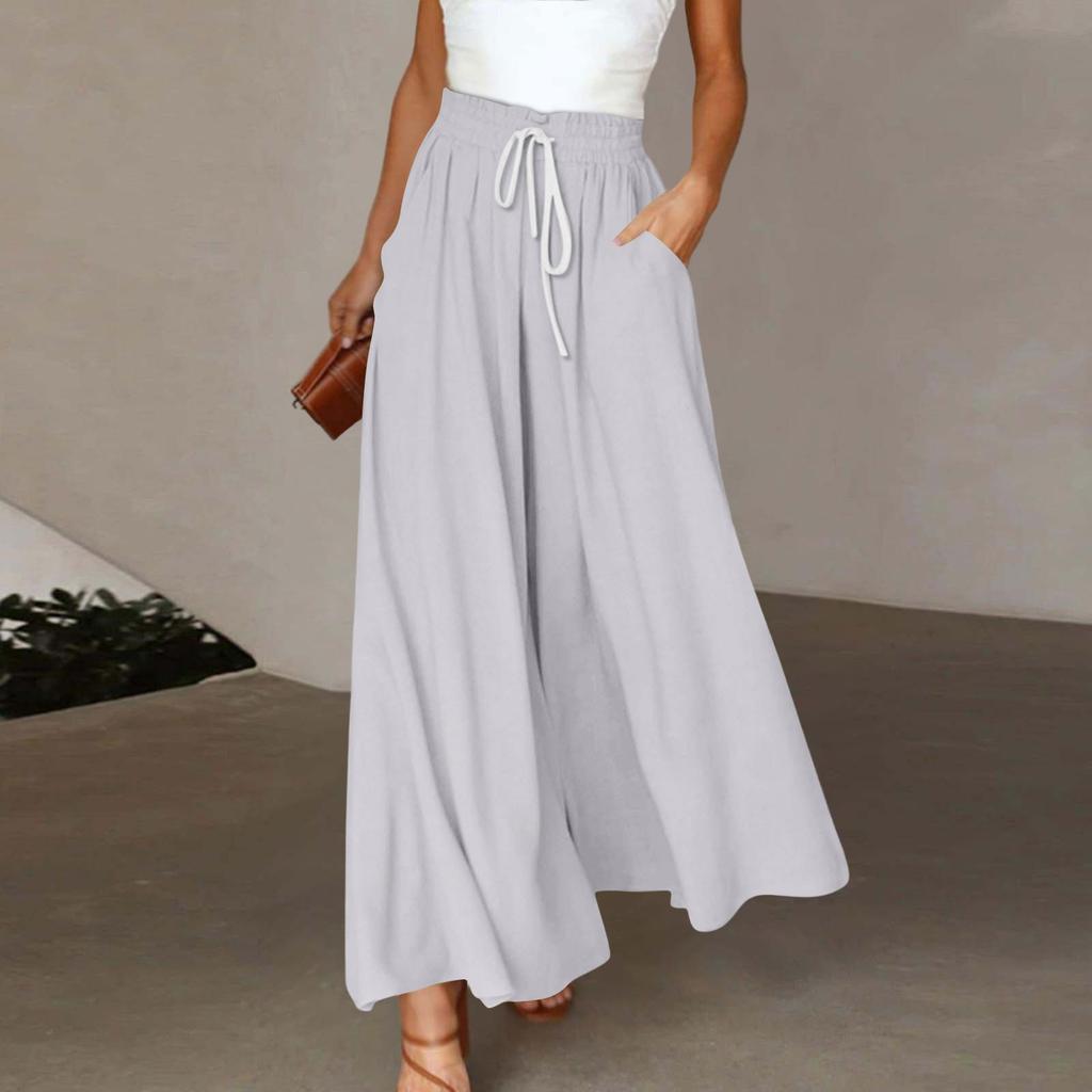 Женские широкие брюки с высокой талией, летние повседневные свободные брюки с карманами, пляжные брюки с принтом