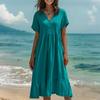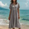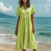 Женское модное однотонное платье с коротким рукавом из хлопка и льна в стиле пэчворк со складками