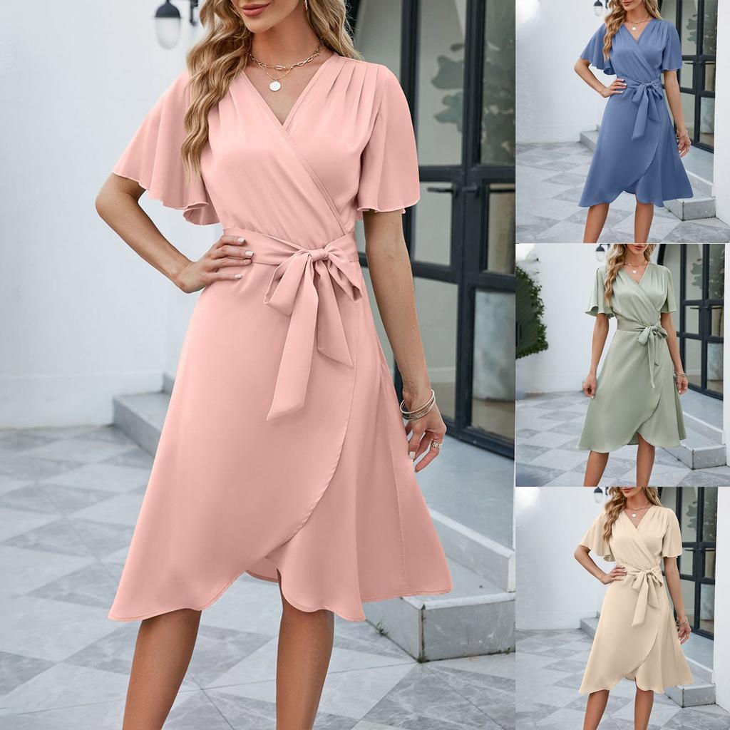 Модное женское летнее атласное платье с V-образным вырезом и рукавом-трубой, удобное сексуальное платье — купить товар онлайн с бесплатной доставкой до всему миру!