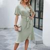 Модное женское летнее атласное платье с V-образным вырезом и рукавом-трубой, удобное сексуальное платье