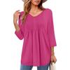 Женские топы с V-образным вырезом и рукавом три четверти в полоску, плиссированные, повседневные, летние, модные, рубашки — купить товар онлайн с бесплатной доставкой до всему миру!