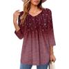 Женские топы с V-образным вырезом и рукавом три четверти в полоску, плиссированные, повседневные, летние, модные, рубашки