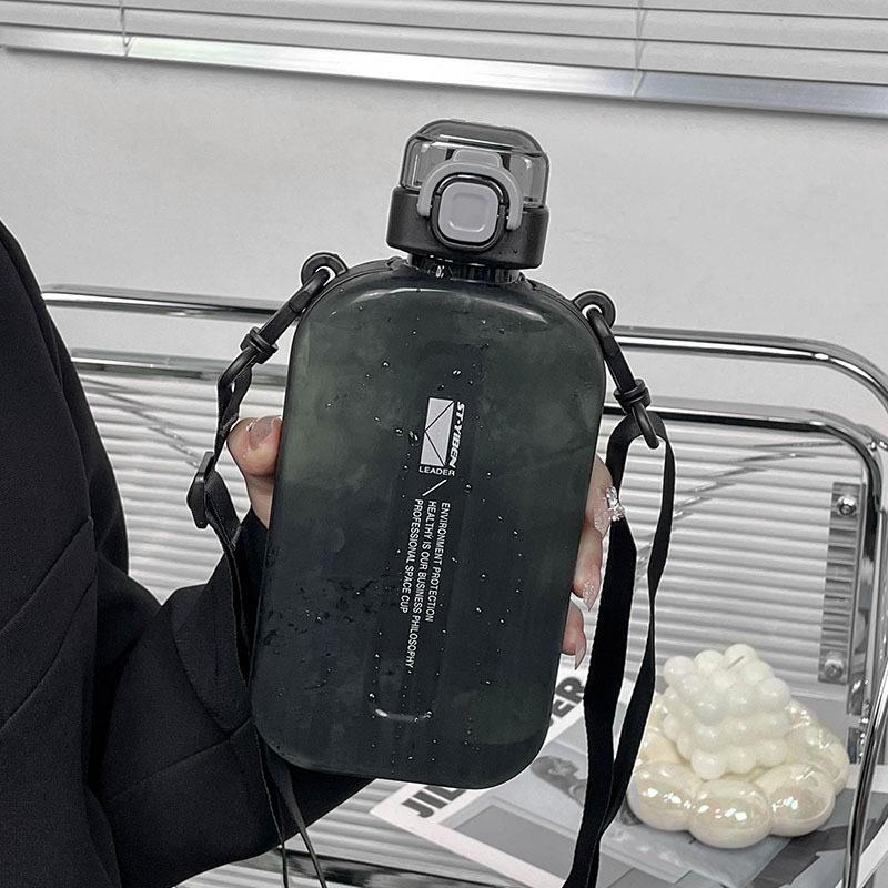 Плоская квадратная прозрачная бутылка для воды, портативная дорожная столовая с регулируемым ремешком, элегантная тонкая бутылка для спорта, кемпинга