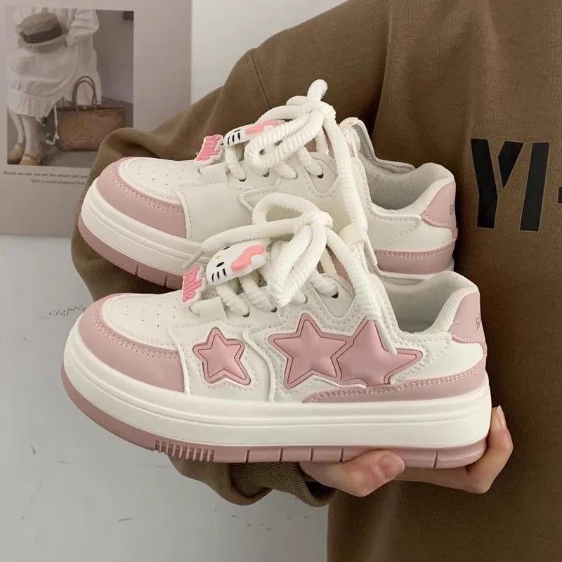 Продать новые кавайные розовые кроссовки на платформе женские винтажные вулканизированные весенне-летние повседневные теннисные женские туфли на плоской подошве — купить товар онлайн с бесплатной доставкой по всему миру!