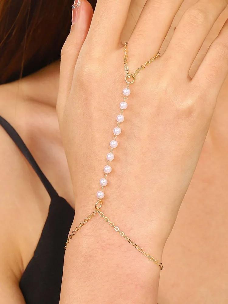 Браслет-цепочка с жемчужным сердечком, многослойная цепочка на палец, сплав, браслет на палец