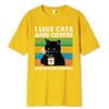 Футболка с забавным принтом «Мне нравятся кошки и кофе» для мужчин и женщин, повседневная свободная хлопковая одежда, дышащая футболка Harajuku