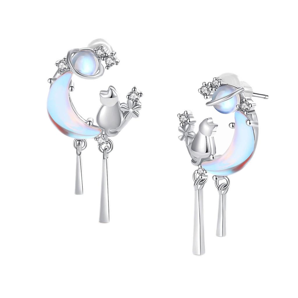 Серьги Мотив кошки камень Цирконий украшение Платиновая отделка серебро 925 пробы материал Совместимо с аллергенами на металлы Подарок на день "Silver Thunder" женский