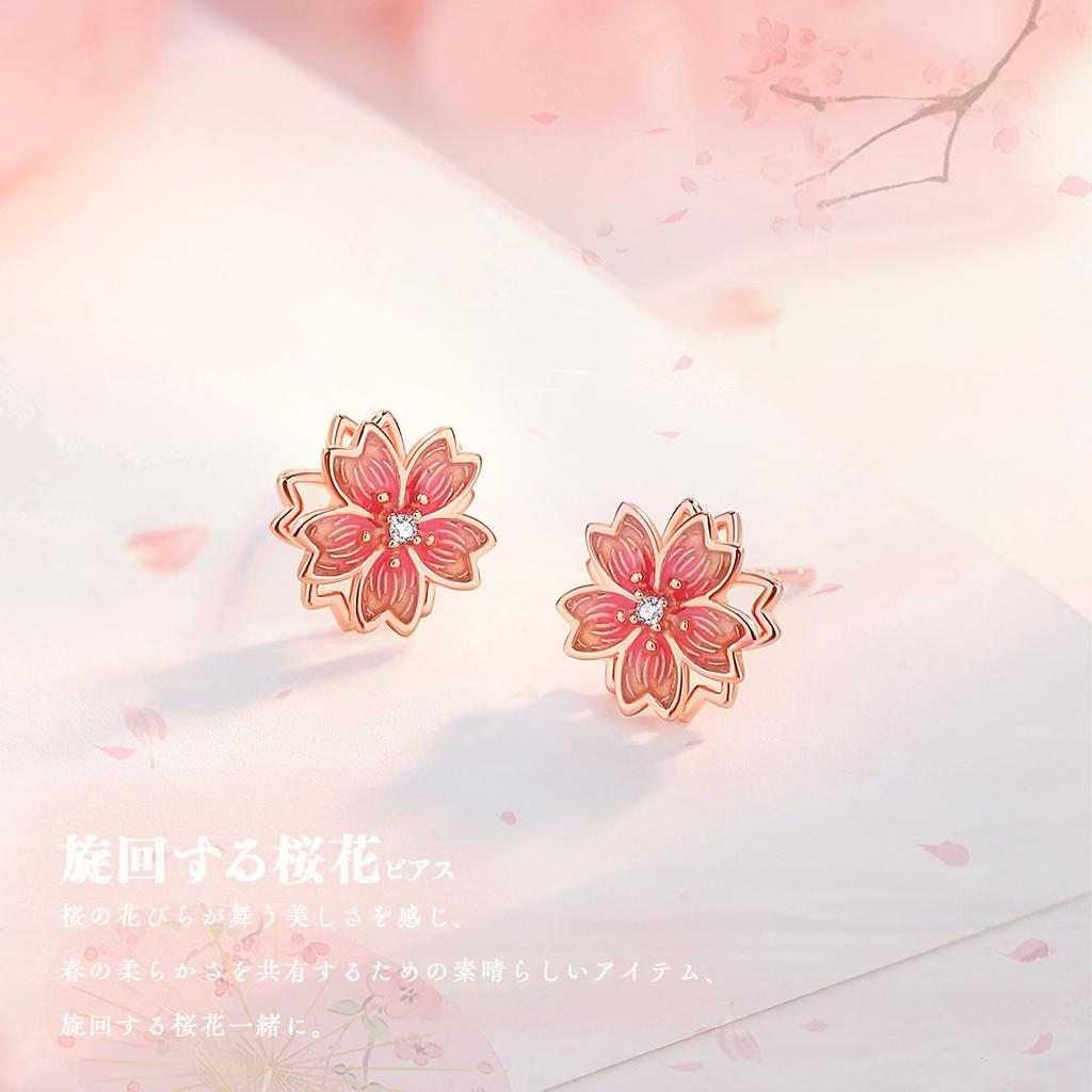 Серьги для цветущей вишни розового цвета, популярные двойные, вращающиеся на 360 градусов, высококачественные циркониевые 925 пробы, металлические аллергенные аксессуары, подарок на день рождения, белый день