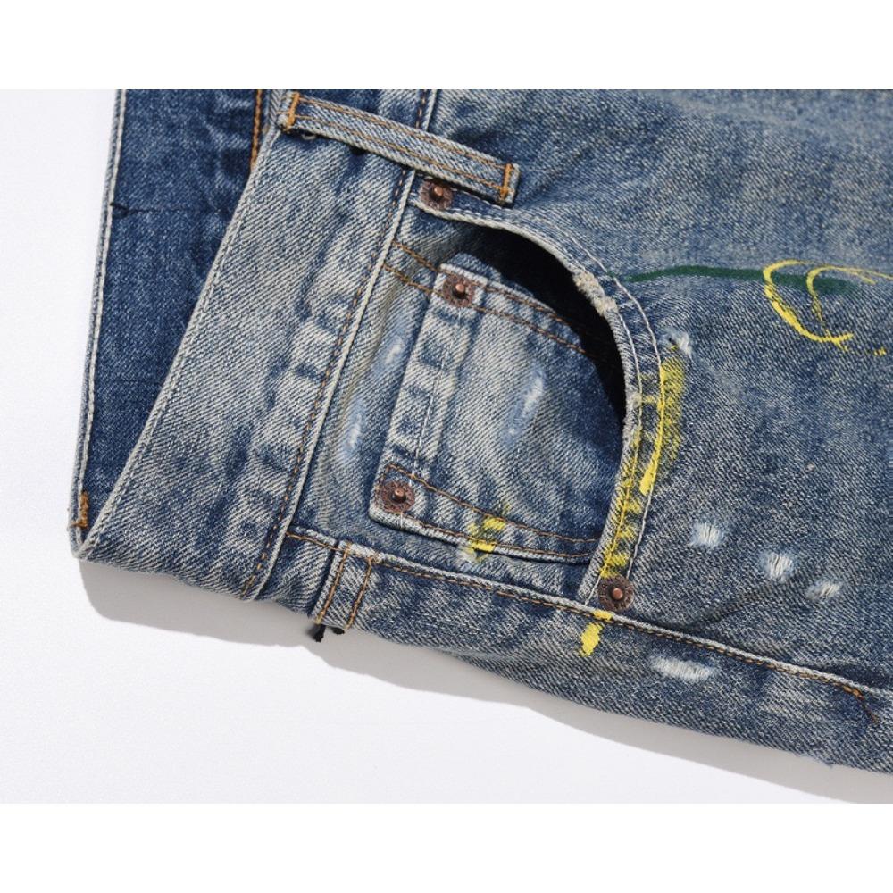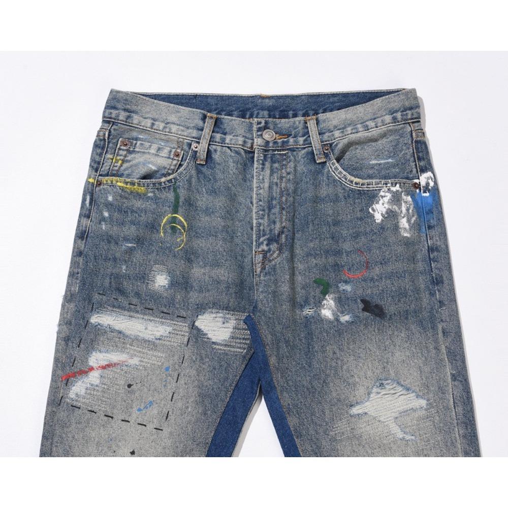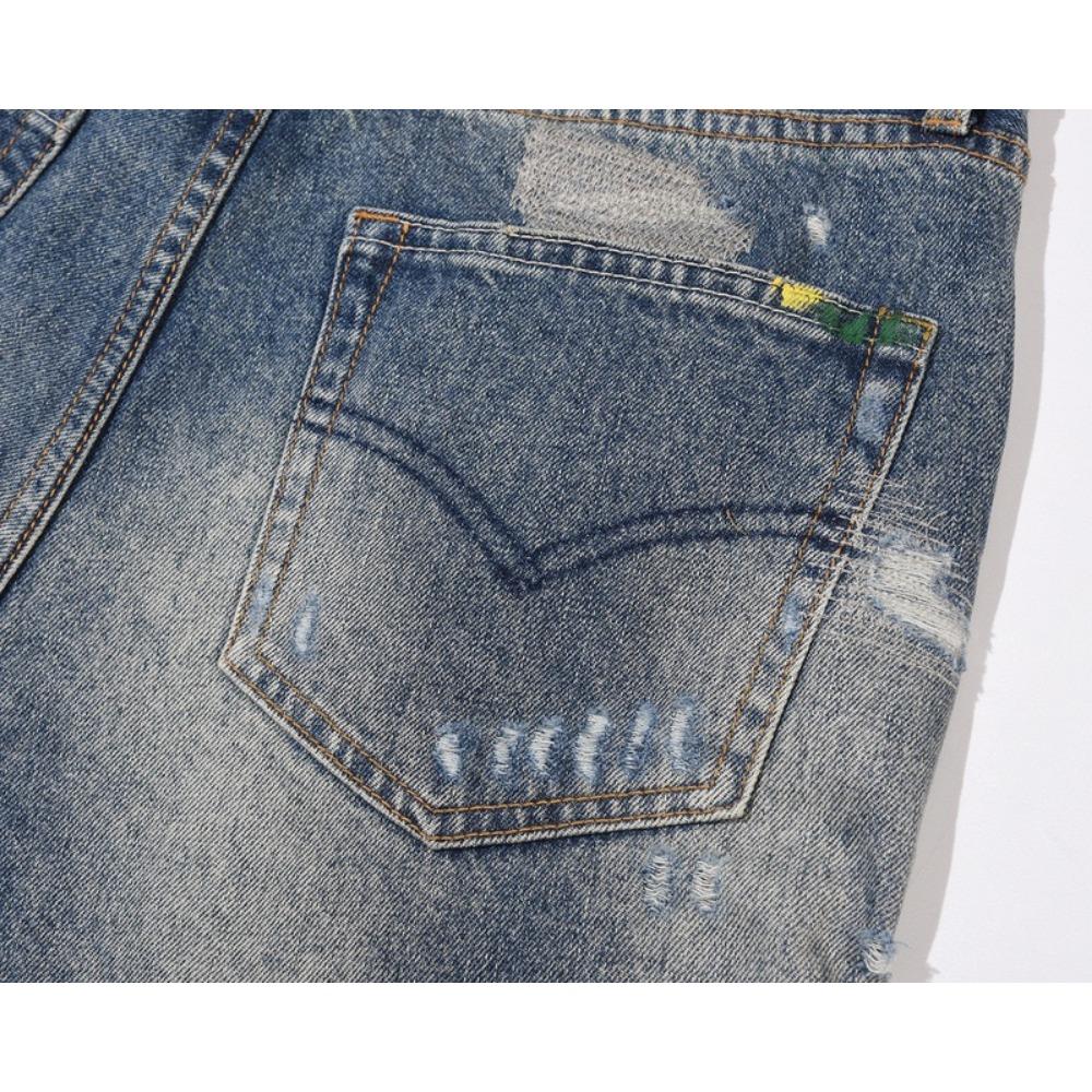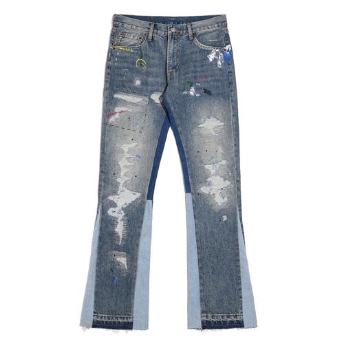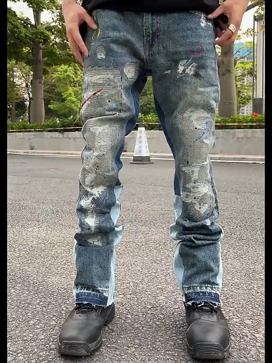 Синие потертые рваные расклешенные джинсы хип-хоп граффити рваные джинсы мужские уличные винтажные широкие джинсы