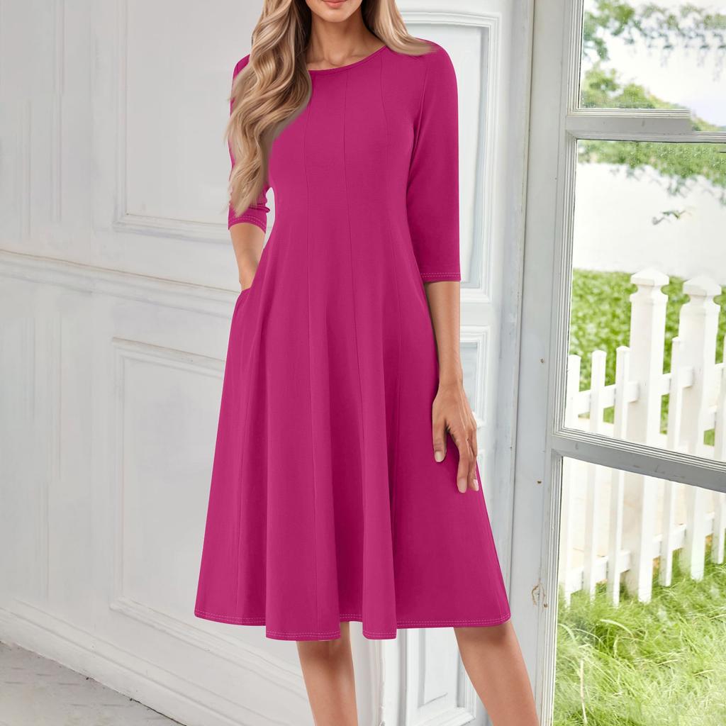 Женское повседневное модное платье миди с круглым вырезом и рукавом три четверти
