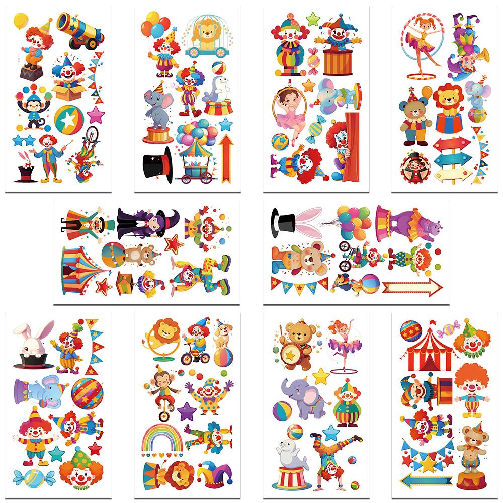 10 листов мультяшных цирковых животных клоун татуировки наклейки для руки руки тела временные водонепроницаемые татуировки наклейки детские креативные подарки