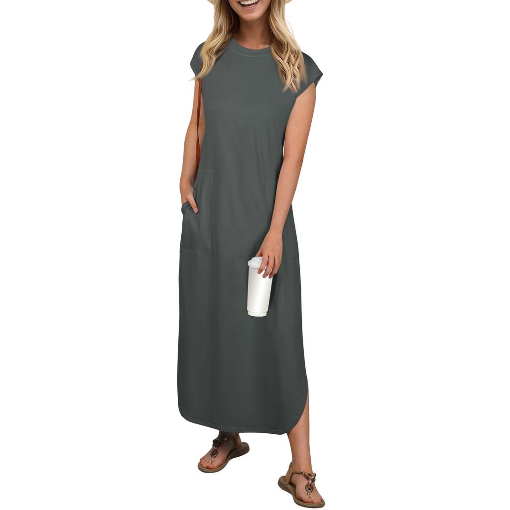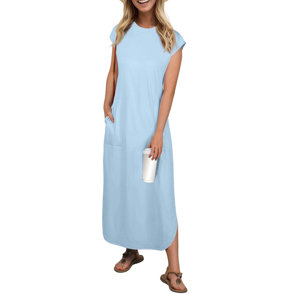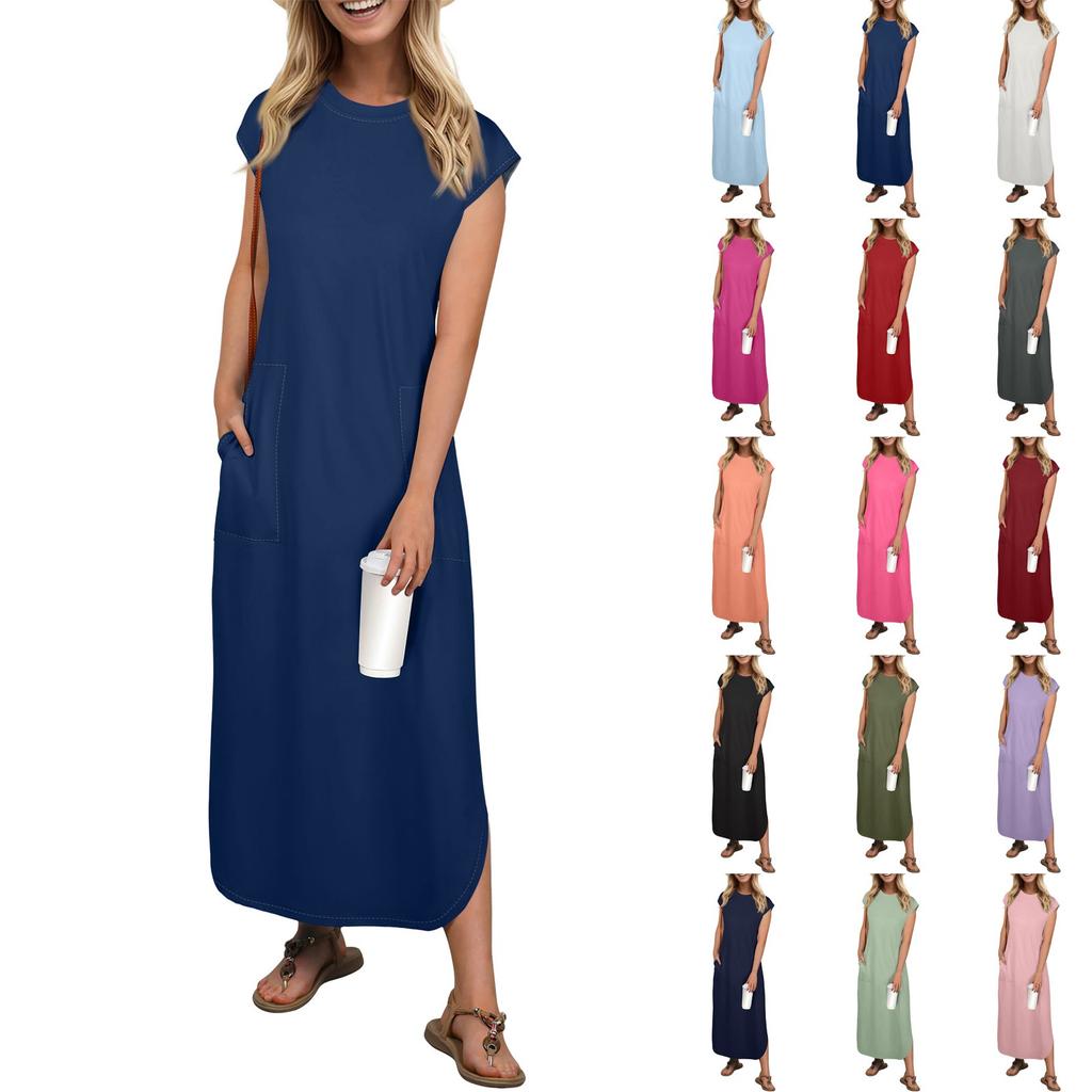 Женская мода повседневный пляжный отпуск однотонный сарафан длиной до колена пляжная юбка с карманом юбка