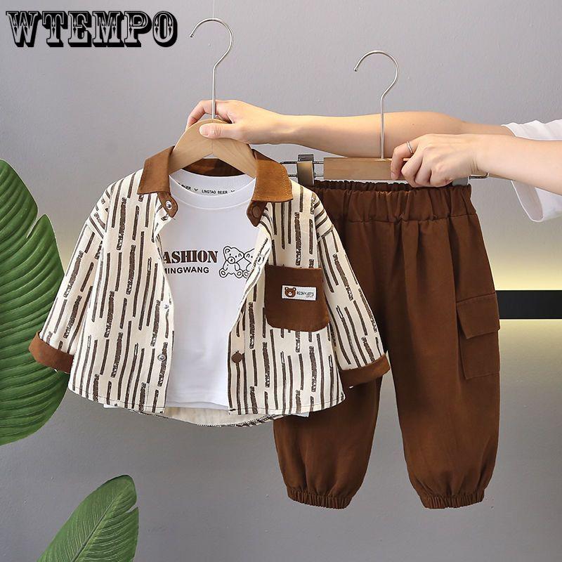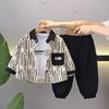 Костюм для мальчиков на весну и осень, рубашка, детское весеннее платье, красивый детский комплект из двух предметов