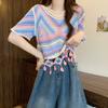 Трикотажная рубашка из ледяного шелка с вышитым ажурным узором в богемном стиле и короткими рукавами с цветочным узором в этническом стиле 1