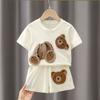 Комплект летней одежды для девочек, комплект из двух предметов для малышей, повседневная детская спортивная одежда с короткими рукавами с рисунком, модная