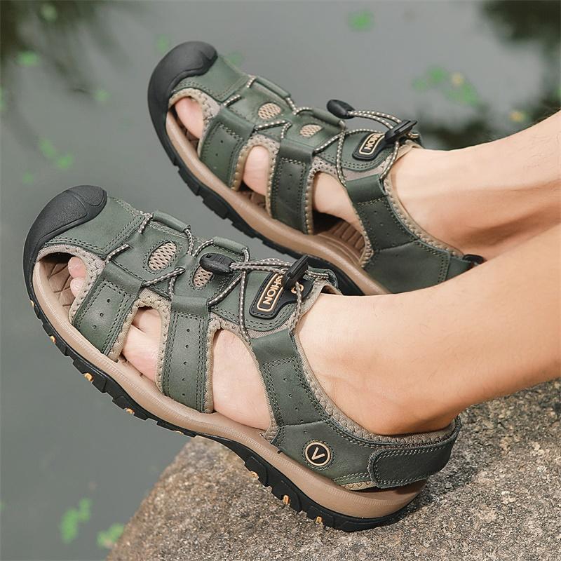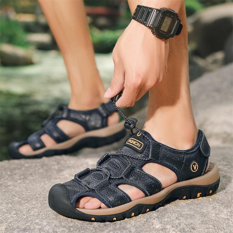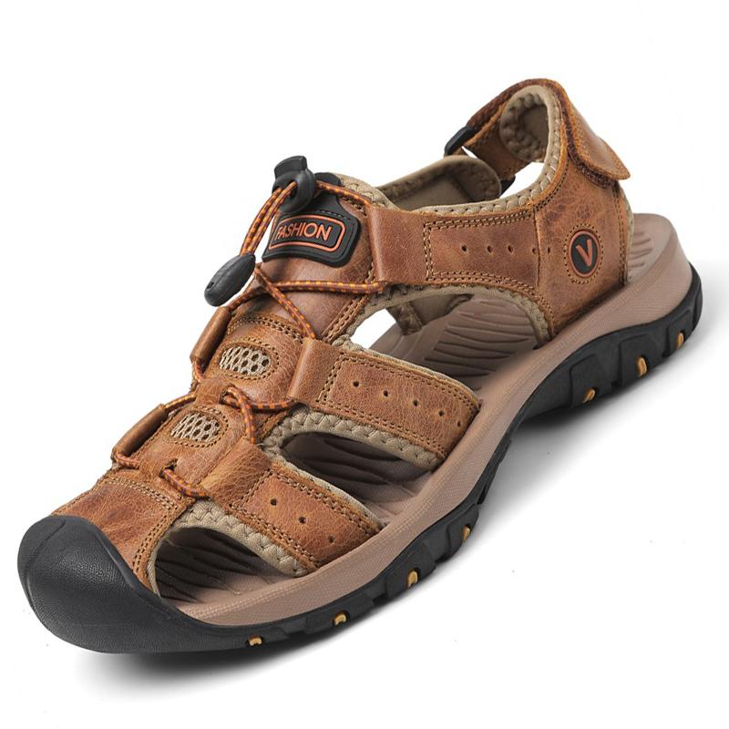 Мужские сандалии, модные кожаные мужские туфли, летние, новые, дышащие, пляжные, мужские сандалии, тапочки, размер 39-46, sandalias de mujer