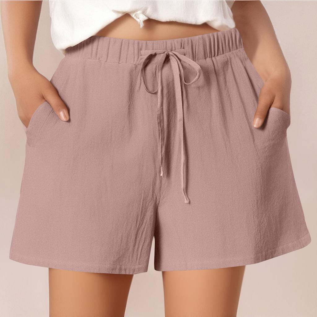 Женские повседневные хлопковые и льняные однотонные свободные шорты со шнуровкой и эластичным поясом длиной три четверти — купить товар онлайн с бесплатной доставкой до всему миру!