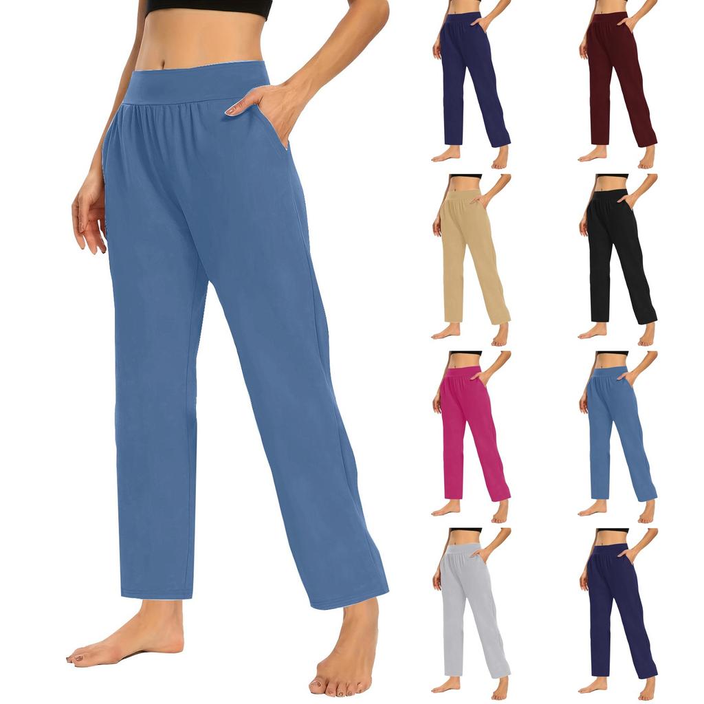 Женские модные однотонные повседневные брюки с высокой талией и карманами, укороченные спортивные брюки