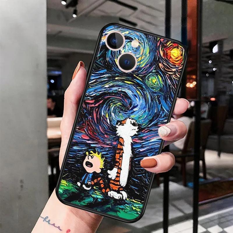 Чехол для мобильного телефона iPhone15 с изображением звездной ночи Ван Гога окрашен и защищен от падений.