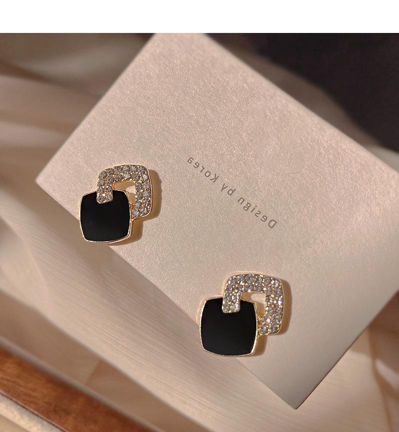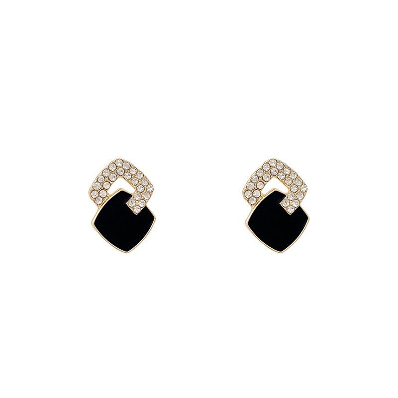 Двойные квадратные черные серьги-гвоздики для женщин высокого класса, маленькие и легкие роскошные серьги, нишевый дизайн, серьги в иностранном стиле.