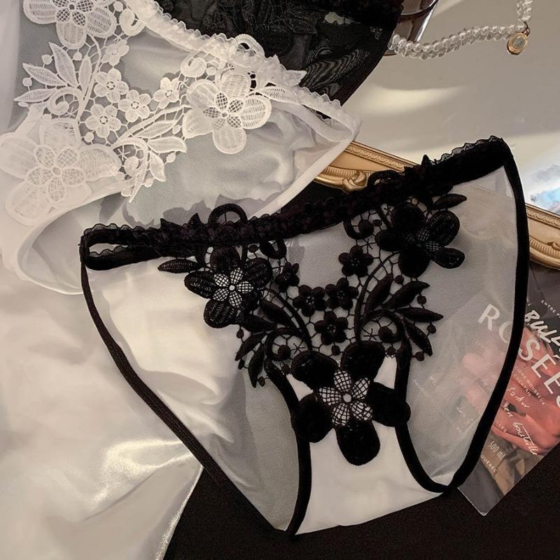 Женские новые вышитые кружевные трусики с низкой талией, сексуальные, полые, прозрачные, тонкие, нижнее белье