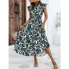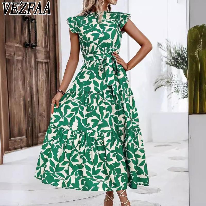VEZFAA Женская мода лето весна цветочный узор принт короткий рукав полуводолазка высокая талия повседневные платья