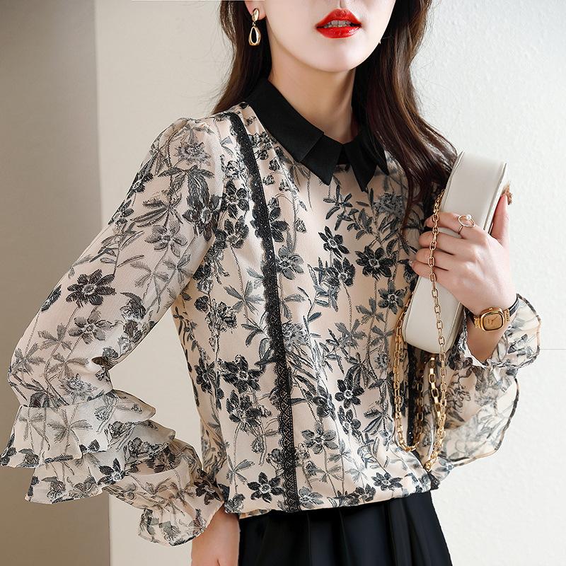 Новая рубашка с оборками, дизайн нишевой модной рубашки, большой размер, свободная рубашка для женщин, уменьшающая возраст