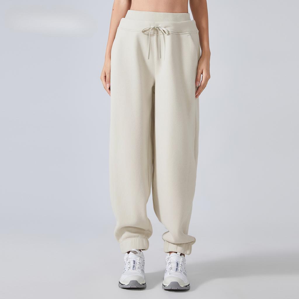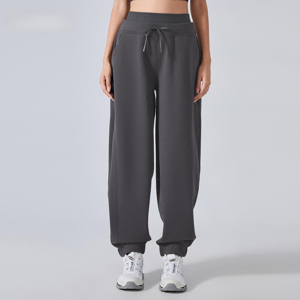 Спортивные спортивные штаны для женщин на осень и зиму, новые свободные завязывающиеся штаны из бархата, универсальные брюки с высокой талией, узкие повседневные брюки