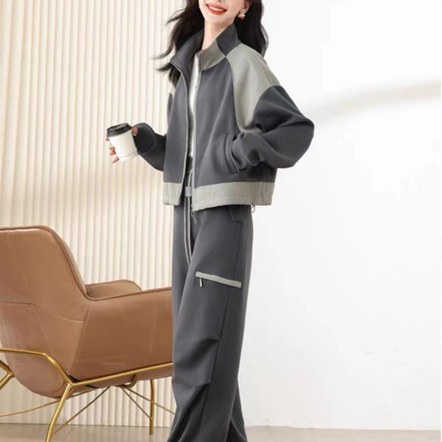 Повседневный спортивный костюм для женщин, осенний свитер на молнии, кардиган, широкие рабочие брюки, комплект из двух предметов — купить товар онлайн с бесплатной доставкой по всему миру!