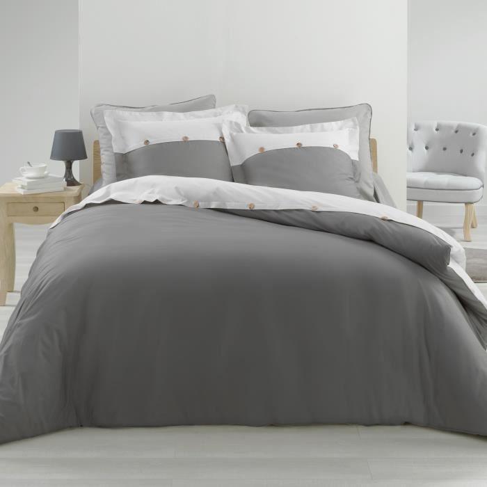 Parure Housse de couette Percale Vice-versa Anthracite 260x240cm
