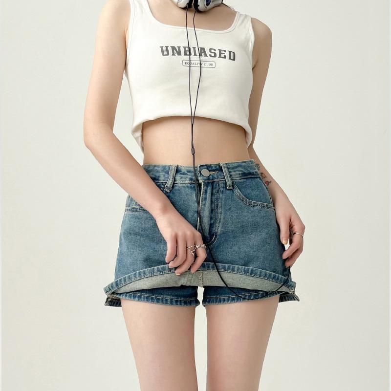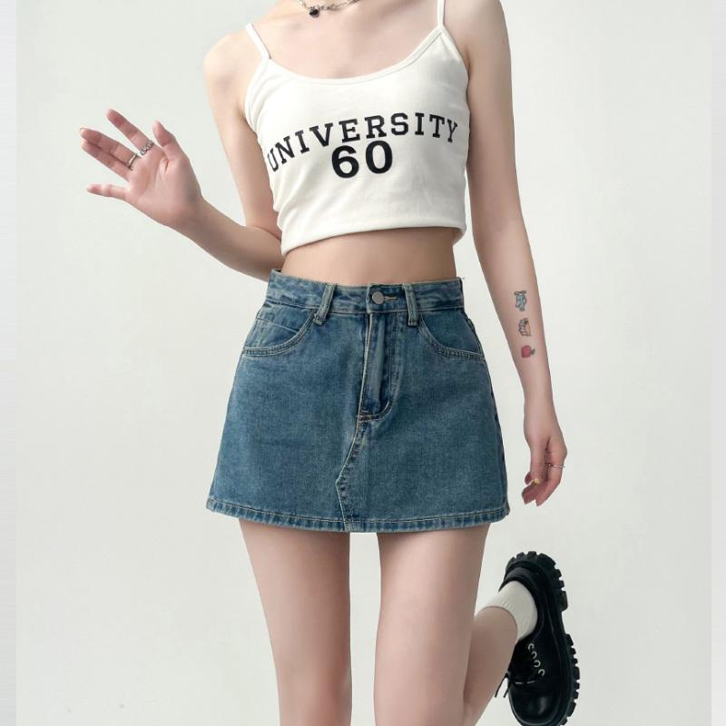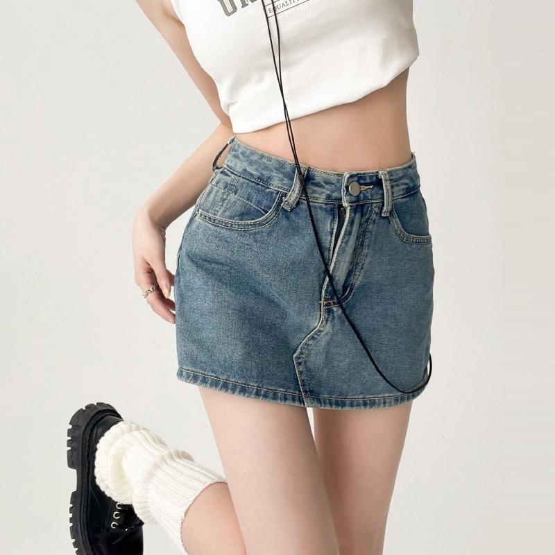 Джинсовая юбка трапециевидной формы с высокой талией, женская летняя тонкая короткая юбка Spice Girl в стиле ретро, синяя подошва Y2k, одежда в корейском стиле