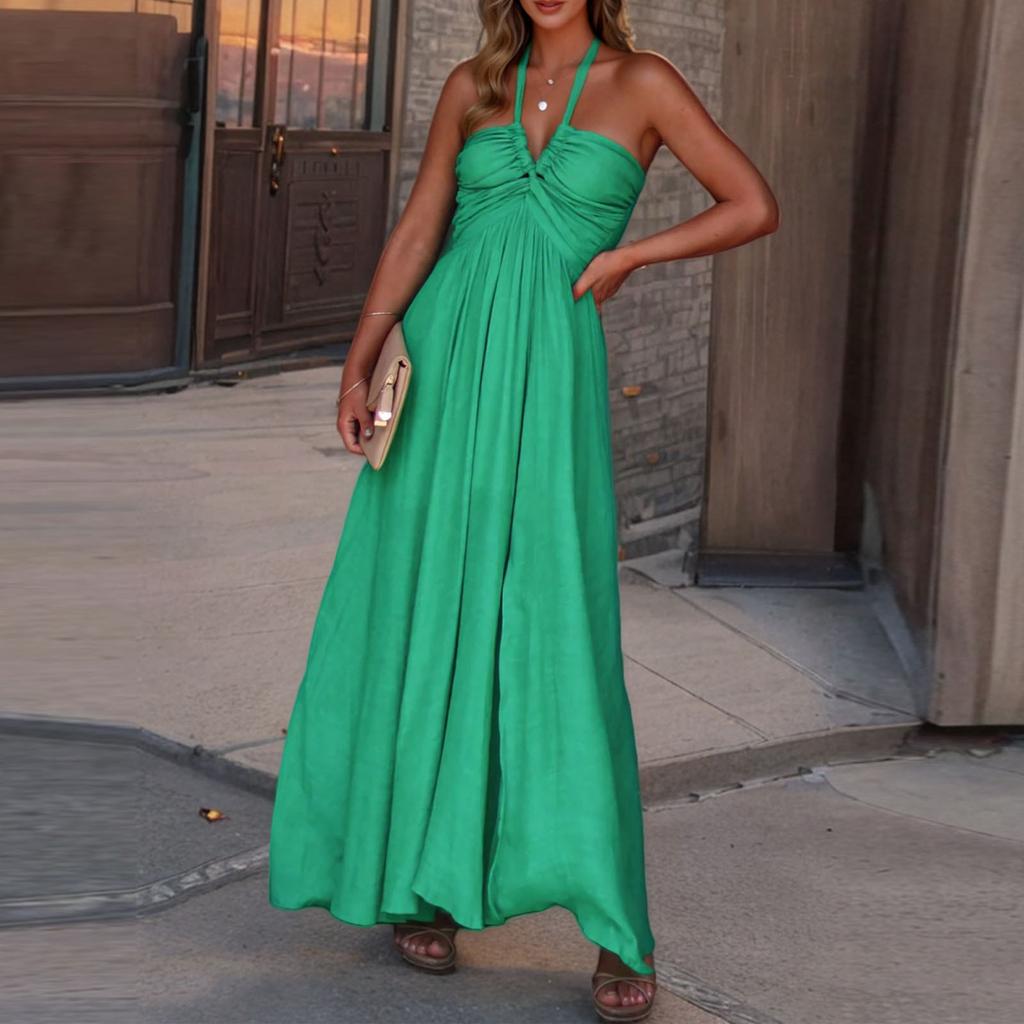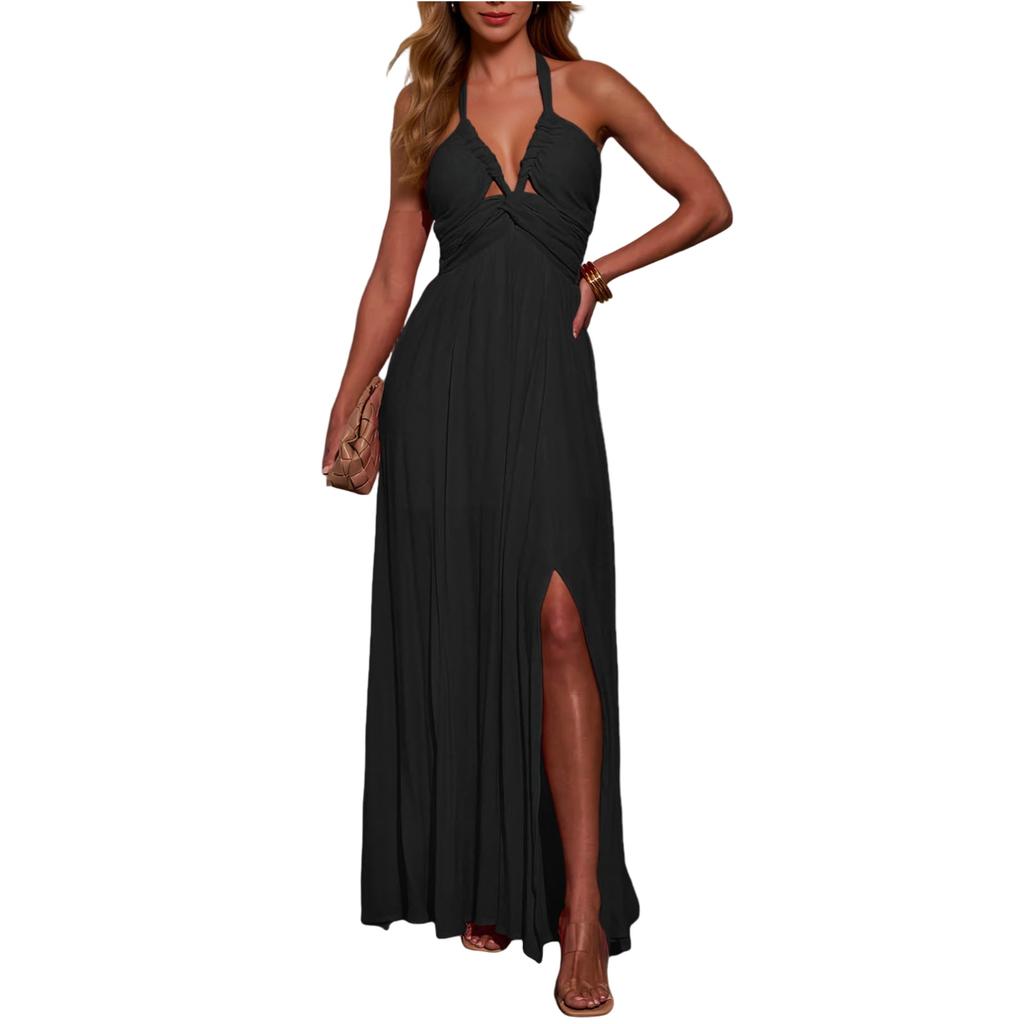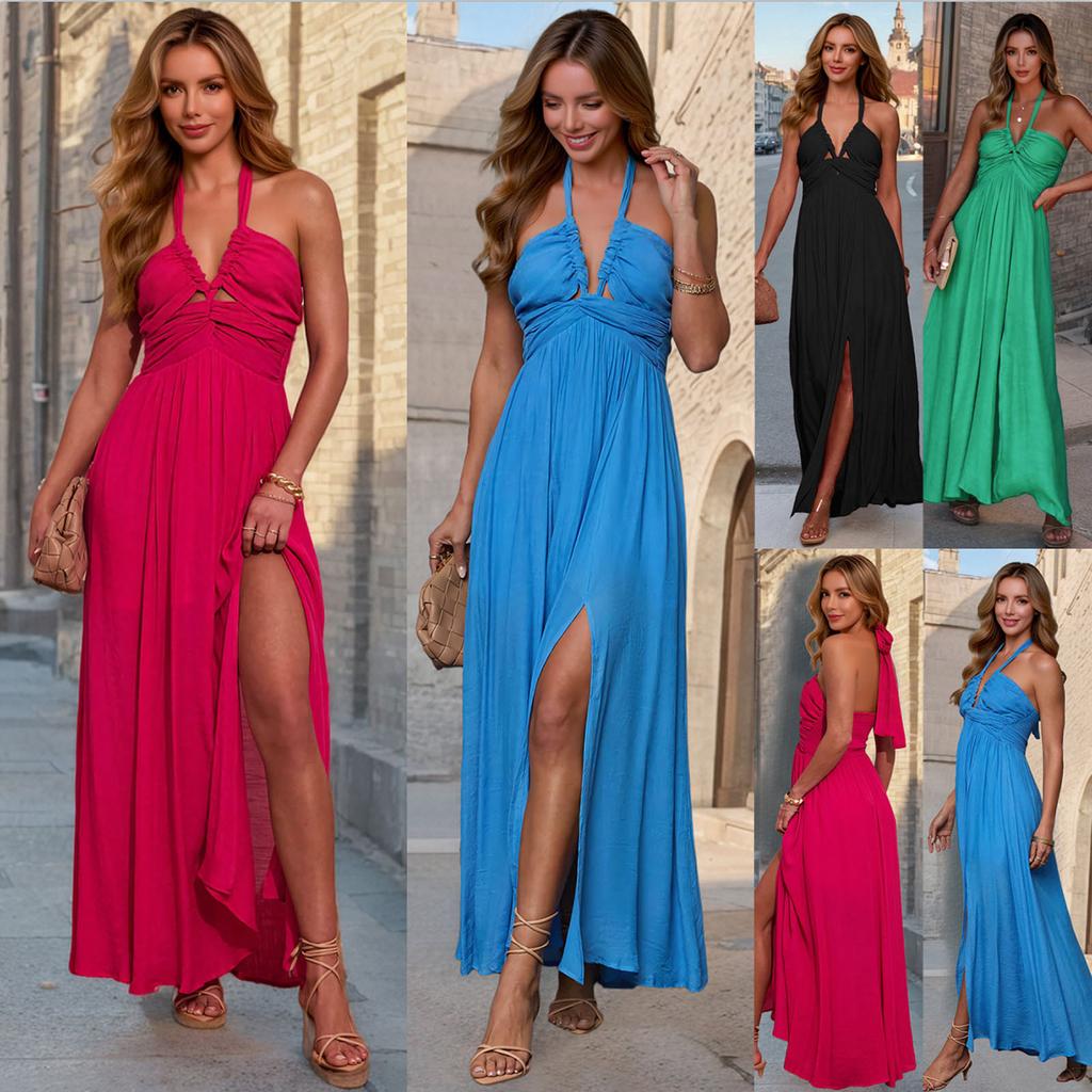 Женские модные бретельки сексуальные спинки талии висячие шеи разрез однотонные платья