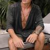 Мужская рубашка, новая однотонная рубашка из хлопка и льна, мужская рубашка с длинными рукавами, мужская