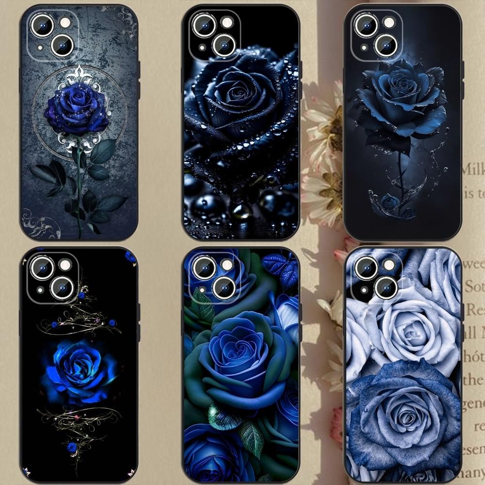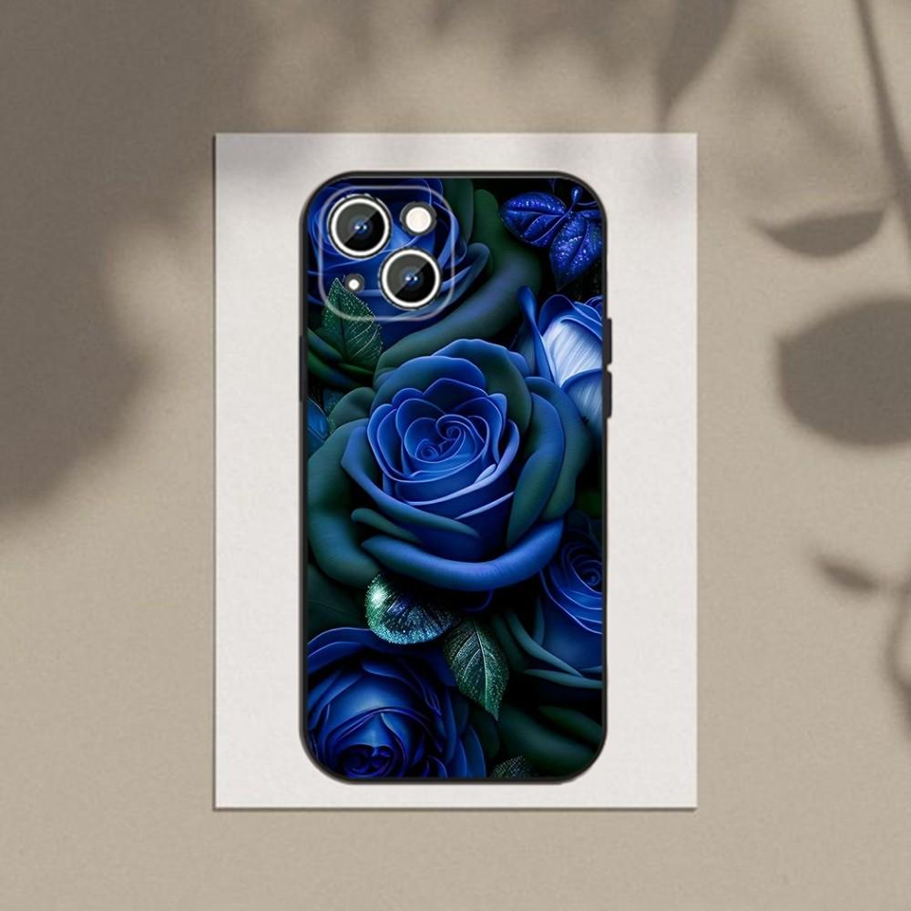 Ультратонкий чехол из ТПУ с синим цветком розы для iPhone 6-16ProMax/SamsungS7-S24Ultra/Redmi13TPro - ударопрочный, устойчивый к царапинам, рельефный чехол CameraSafe