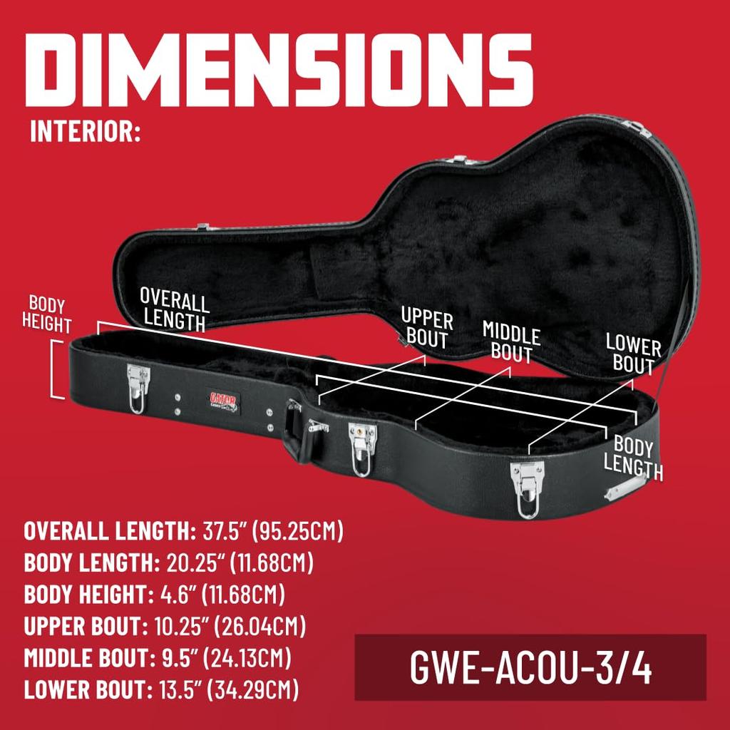 GATOR Acoustic Guitar Hard Case GWE Series Plywood Tolex Laminated with Size Acoustic GWE-ACOU-3/4 (Compatible 3/4 Guitar) []