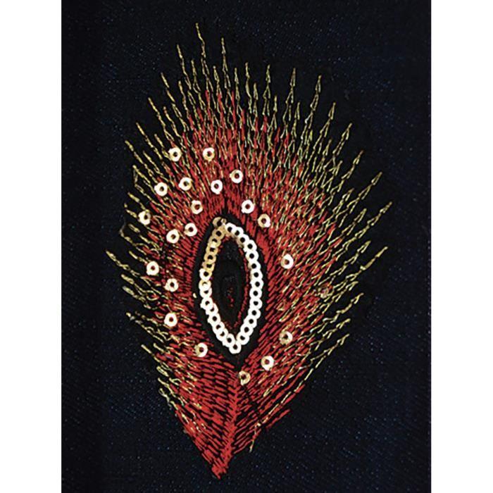 Motif Broderie Thermo - Plume Rouge - 11x7cm - Idéal pour couture - Facile à appliquer