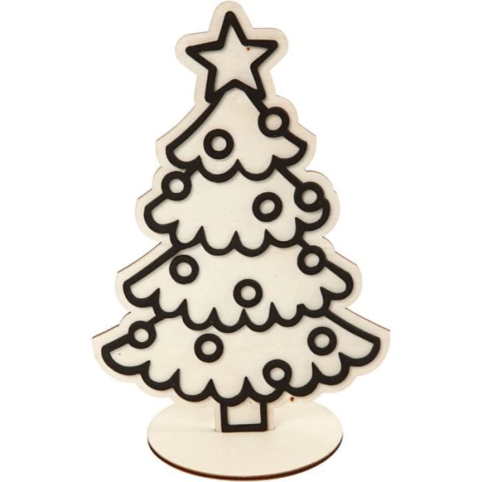 Figurine en bois - Sapin - 19,5 cm - Décorative - Socle en bois inclus