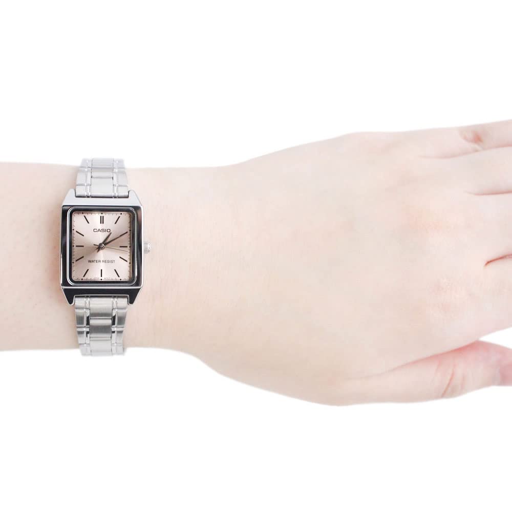 Casio Casio Casio Стандартные женские наручные часы из нержавеющей стали, металл, серебро, розовое золото LTP-V007D-4E [Товар]
