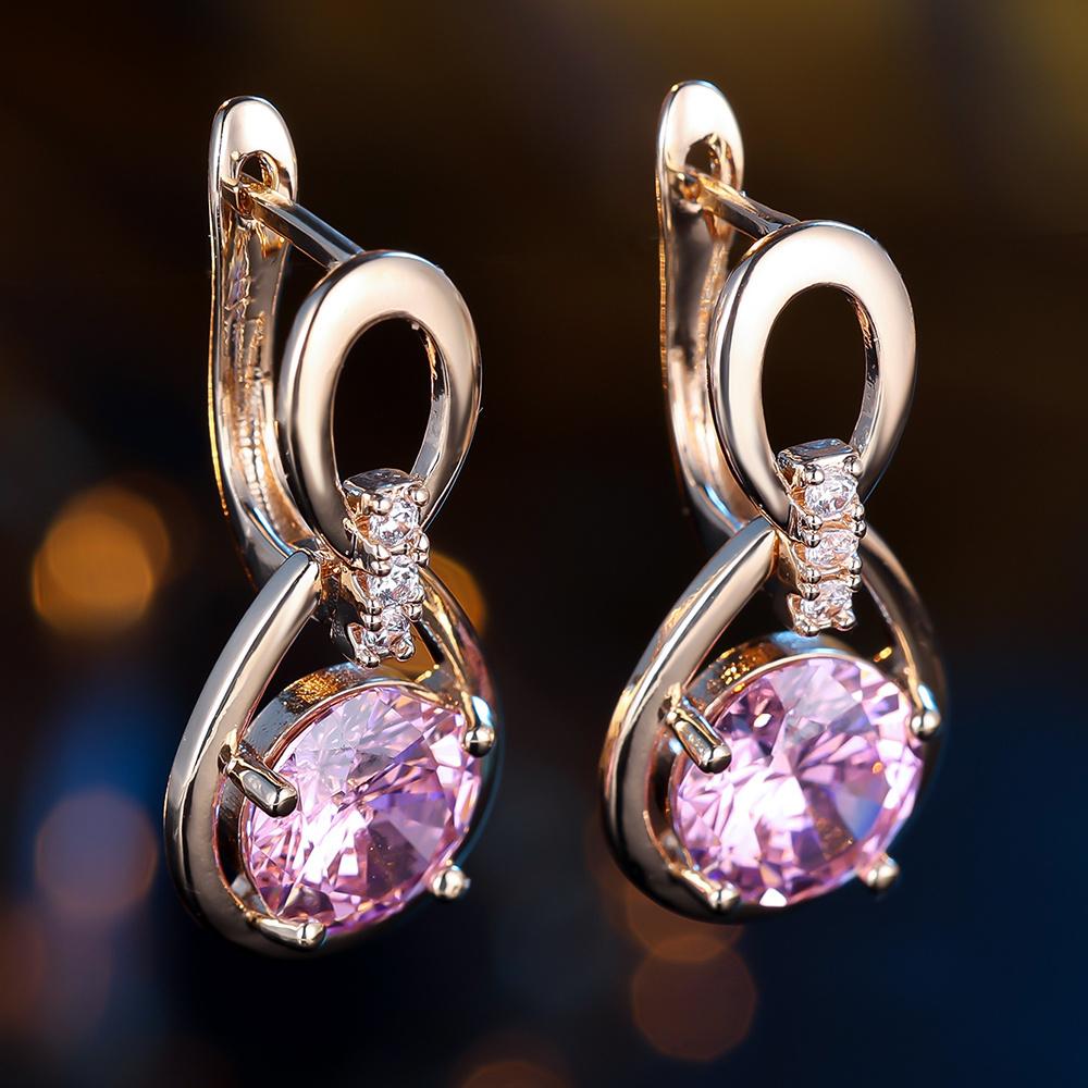1 пара серег золотистого цвета с круглыми розовыми камнями, женские свадебные серьги-капли, ювелирные изделия