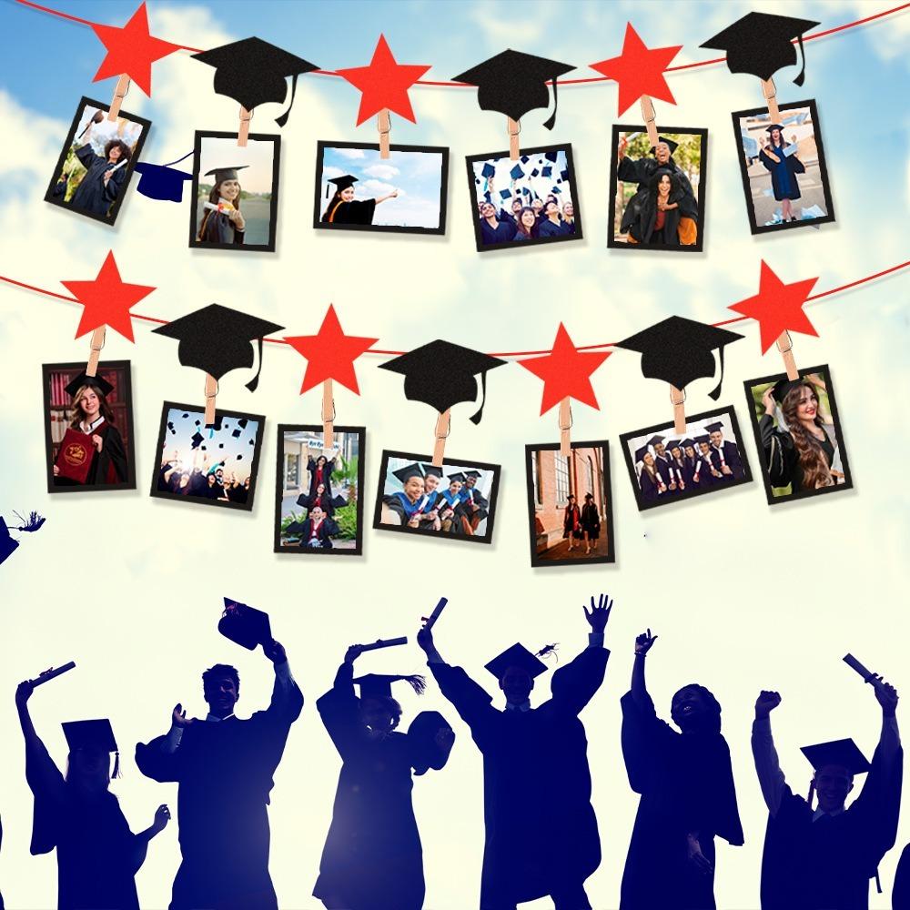 Black Gold Graduation Photo Banner Celebrate Graduation Hanging Decor Party Favors