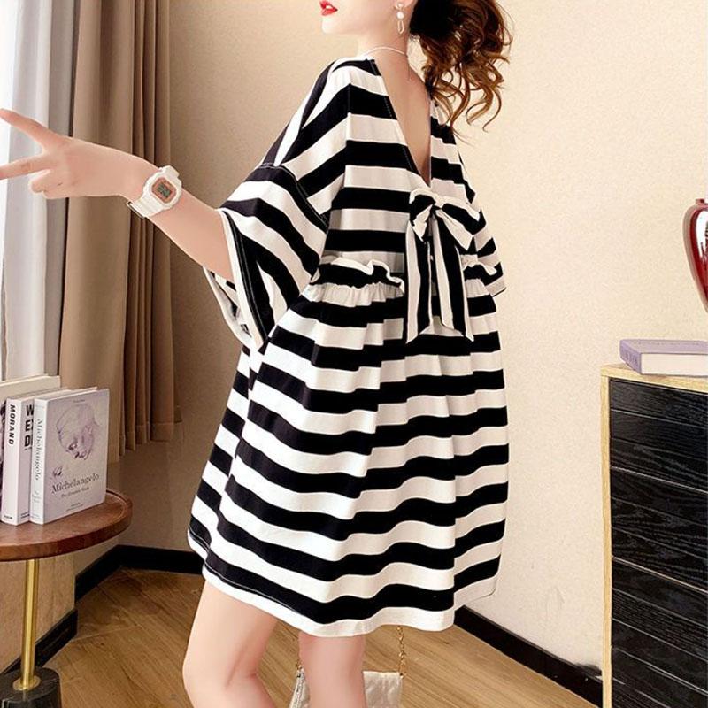Модная футболка с круглым вырезом, свободная, с оборками и бантом, с открытой спиной, женская одежда, летние свободные топы, повседневная футболка — купить товар онлайн с бесплатной доставкой по всему миру!