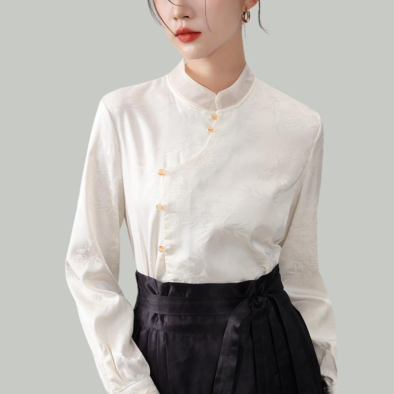 Новый китайский топ на пуговицах для женщин, новая женская рубашка высокого класса с воротником-стойкой в китайском стиле