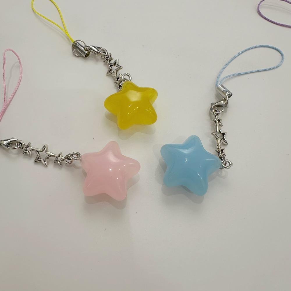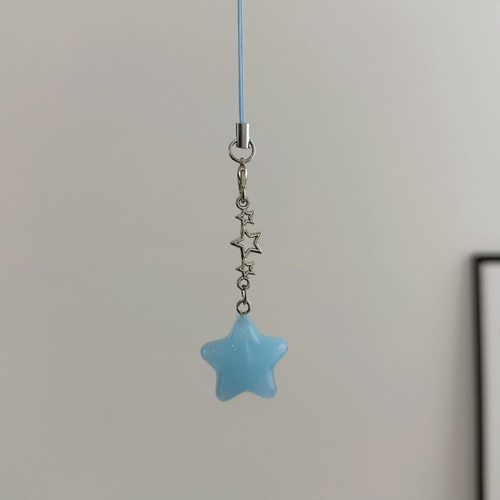 Crystal Beads Tassel Phone Chain Five-Pointed Star Car Keyring Exquisite Small Gift