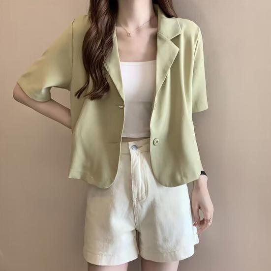 Этот женский летний пиджак изготовлен из мягкого и эластичного полиэфирного волокна, обеспечивающего комфорт в течение всего дня.. Свободный крой подходит большинству фигур и обеспечивает воздухопроницаемость..