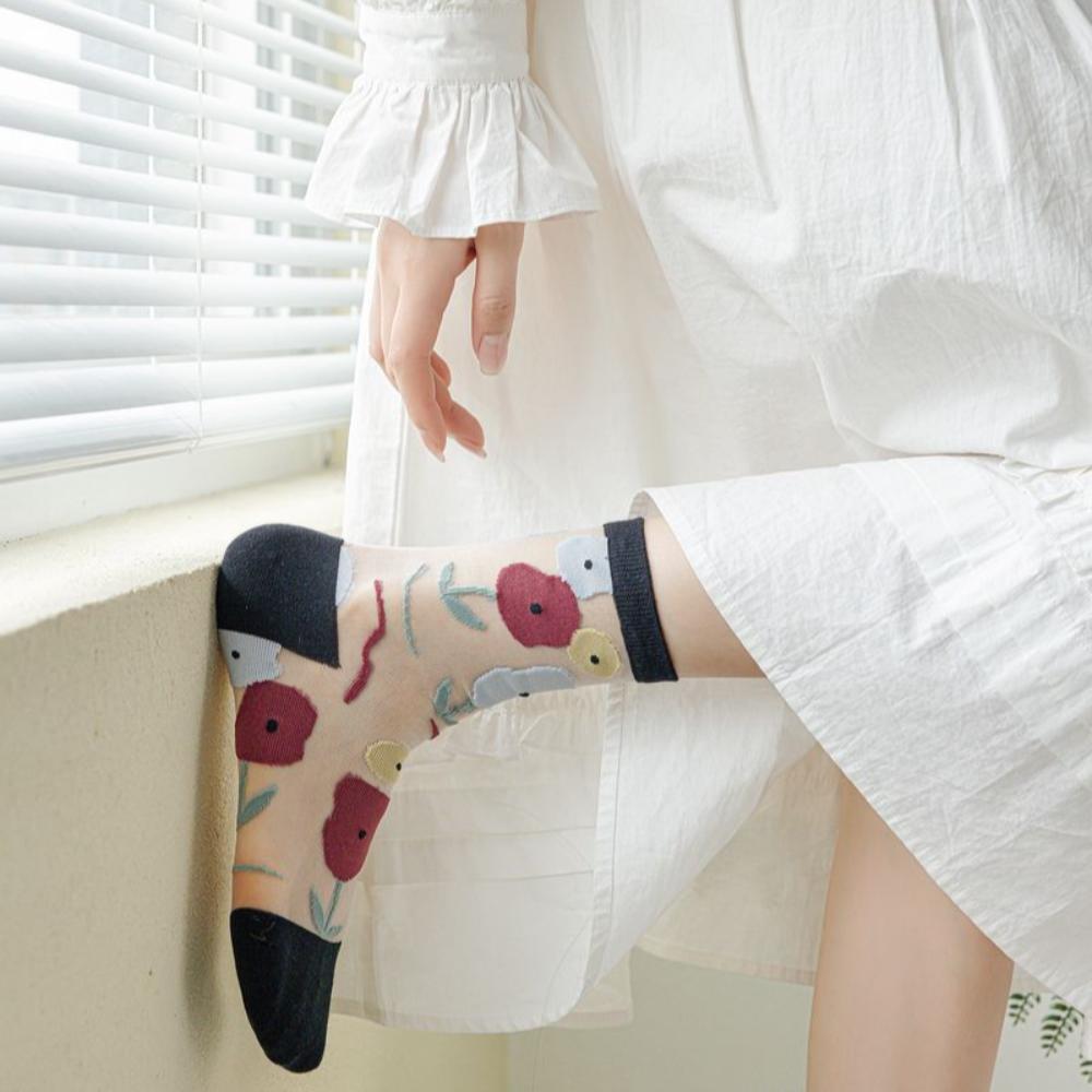 Сладкие прозрачные носки, кружевные шелковые носки, милые женские носки