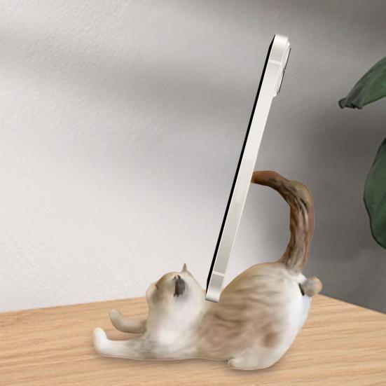 Стильный дизайн с изображением кота: Это украшение из смолы — не просто милая подставка для телефона в виде кота, оно сочетает в себе функциональность и эстетическую привлекательность.. Украсьте свой рабочий стол или офис этим очаровательным предметом в виде кошки.