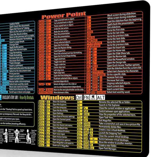 Повышенная эффективность: С помощью этого коврика для мыши вы сможете легко интегрировать сочетания клавиш Excel, Word и PPT в свой рабочий процесс, оптимизируя задачи и обеспечивая быструю навигацию для опытных пользователей Windows.