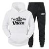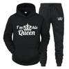Толстовка Lover Tracksuit с капюшоном с принтом QUEEN KING для пар, толстовка с капюшоном, женская толстовка из 2 предметов, спортивная одежда для мужчин и женщин