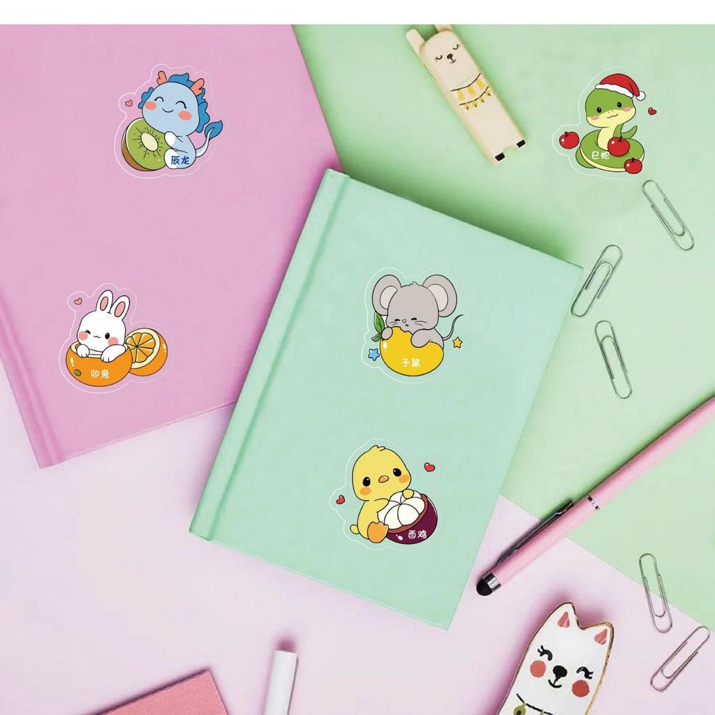 120 шт. милые наклейки с изображением мультяшных знаков зодиака 12 знаков животных водонепроницаемые самоклеящиеся наклейки
