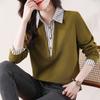 Женская новинка осени, полосатая рубашка с воротником-поло, имитация двухкомпонентного свитшота с длинными рукавами